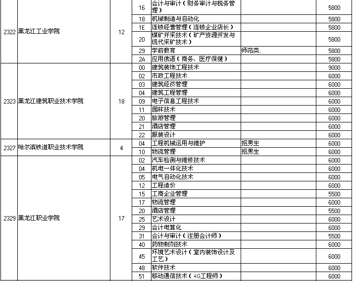 2323黑龙江建筑职业技术学院1800建筑装饰工程技术9000