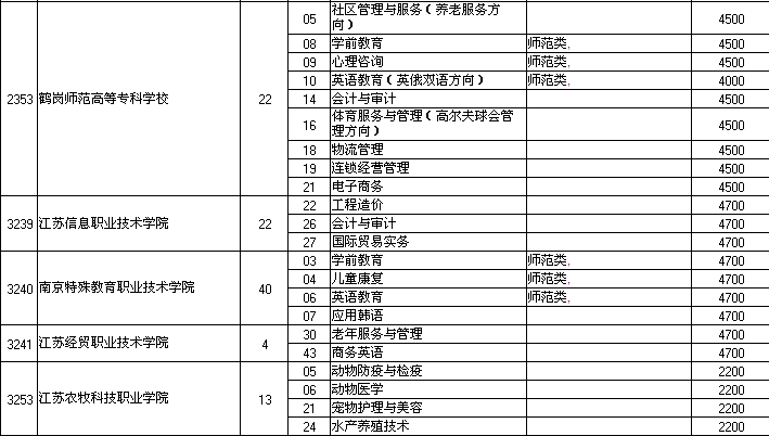 3240南京特殊教育职业技术学院4003学前教育师范类,4700
