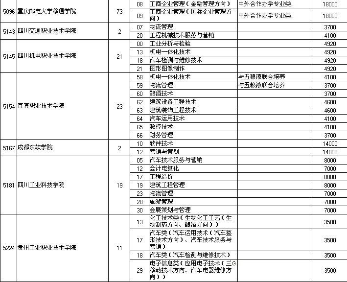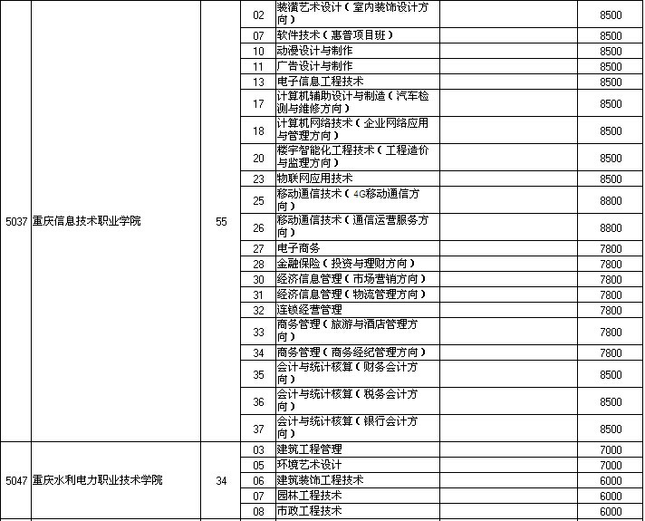 重庆市2014高职(专科)一阶段缺额情况表(文史类)