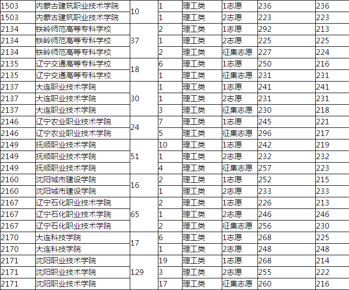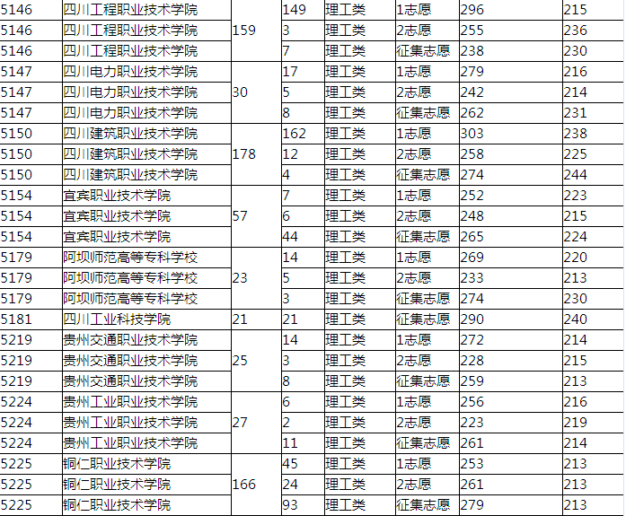 5150四川建筑职业技术学院178162理工类1志愿303238