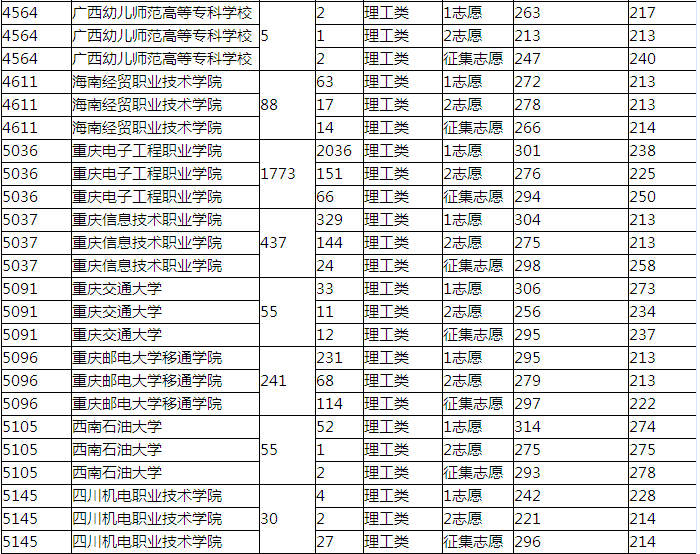 5036重庆电子工程职业学院66理工类征集志愿294250