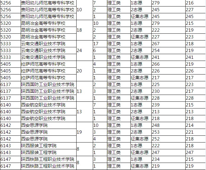 5256贵阳幼儿师范高等专科学校1理工类征集志愿245245