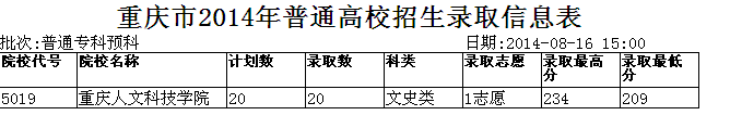 5019重庆人文科技学院2020文史类1志愿234209