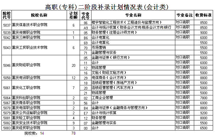 高职二专补录计划(会计类)发布时间:2014/9/26 10:42:55 | 人感兴趣 | 评分:3