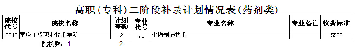 重庆高职二专补录计划(药剂类)发布时间:2014/9/29 14:51:38 | 人感兴趣 | 评分:3