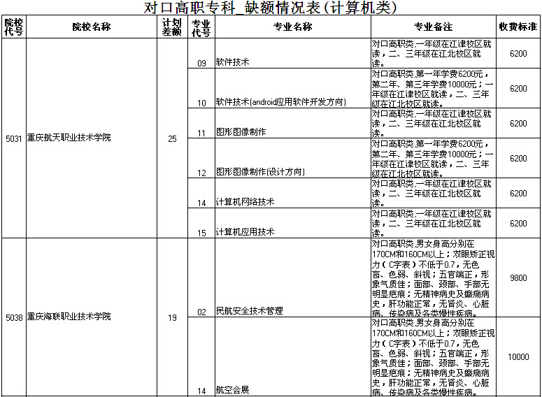 重庆对口高职专科计算机类缺额表发布时间:2015/7/17 11:23:24 | 人感兴趣 | 评分:3
