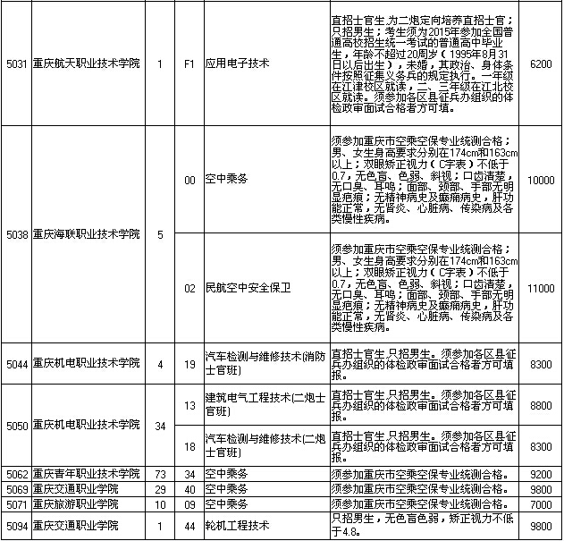 重庆市2015年高职专科理工提前批缺额情况表发布时间:2015/8/7 14:36:54 | 人感兴趣 | 评分:3