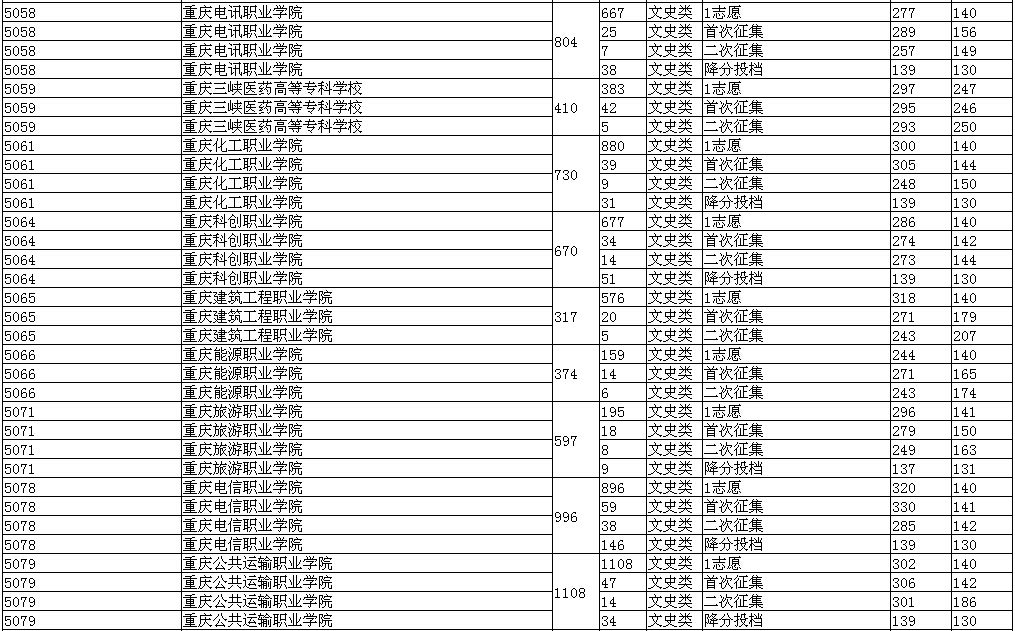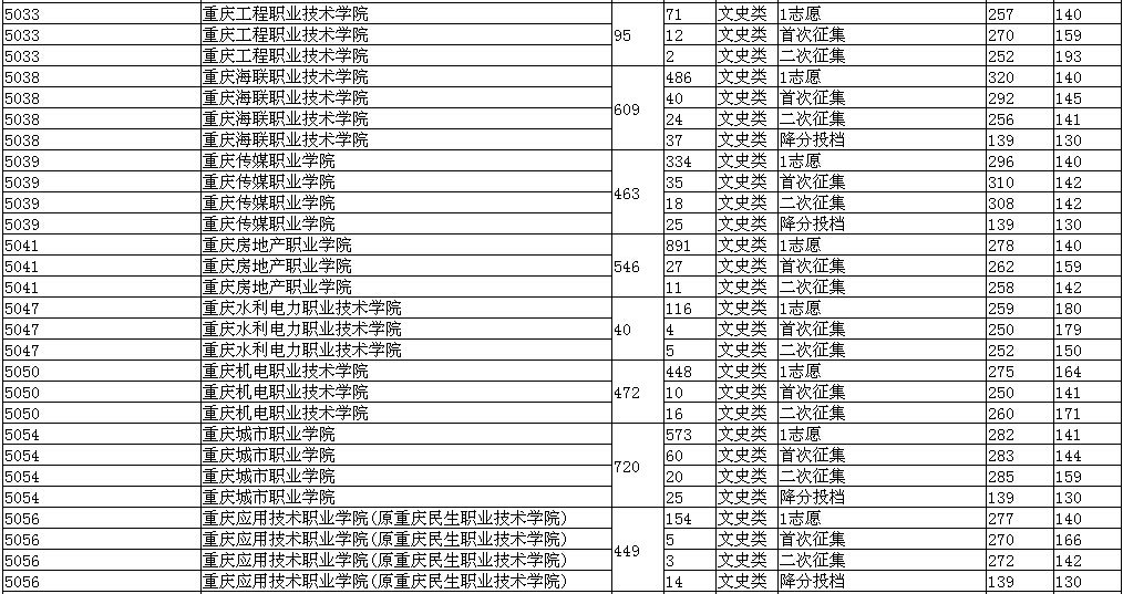 重庆市2015年高职(专科)二阶段文史类招录表发布时间:2015/8/20 11:27:26 | 人感兴趣 | 评分:3