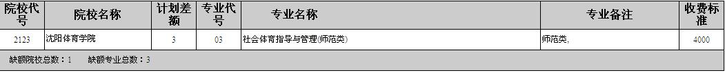 2123 沈阳体育学校 3 03 社会体育指导与管理(师范类)