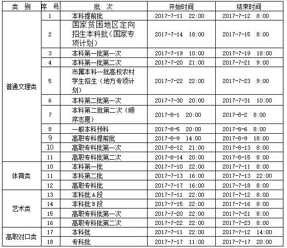 2017年重庆市普通高校志愿征集时间安排表