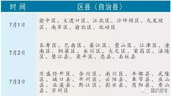 各区县考生军检具体时间安排