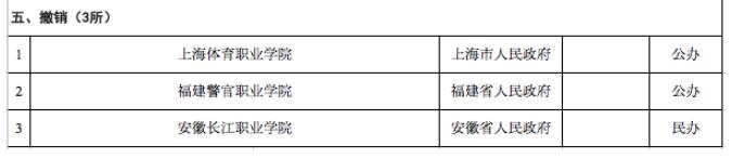 显示,上海体育职业学院、福建警官职业学院、安徽长江职业学院这3所高校被撤销。