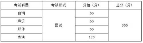 考查考生的外部形象、个性特征与表演综合素质。表演综合素质包括考生的信念感、感受力、想象力、理解力、表现力、应变能力等,以及小品的构思与完成能力。