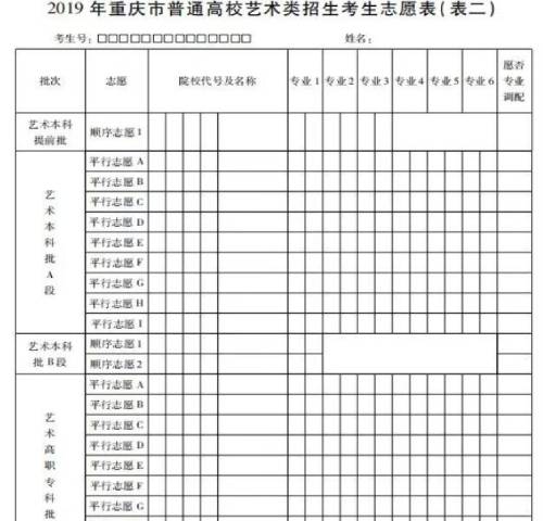 二、2019年重庆市普通高校艺术类招生考生志愿表