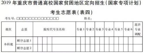 四、2019年重庆市普通高校国家贫困地区定向招生(国家专项计划)考生志愿表