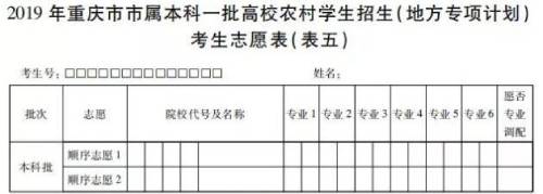 五、2019年重庆市市属本科一批高校农村学生招生(地方专项计划)考生志愿表