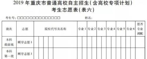 六、2019年重庆市普通高校自主招生(含高校专项计划)考生志愿表