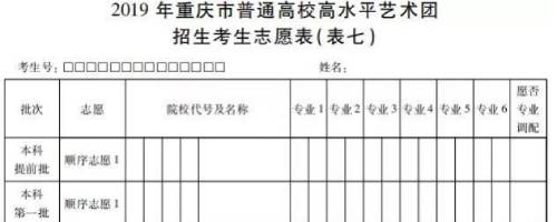 七、2019年重庆市普通高校高水平艺术团招生考生志愿表