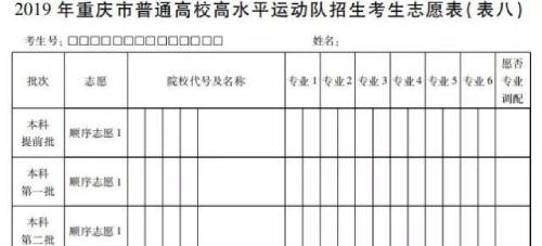 八、2019年重庆市普通高校高水平运动队招生考生志愿表