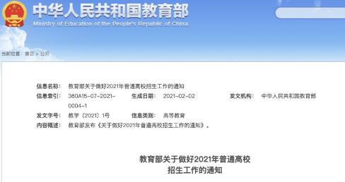 日前,教育部发布了关于做好2021年普通高校招生工作的通知。