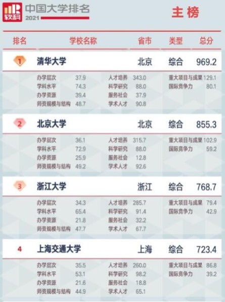 2021软科中国大学排名前100出炉,重庆2所高校上榜