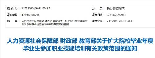 三部门共同发布扩大院校毕业年度毕业生参加职业技能培训政策范围通知