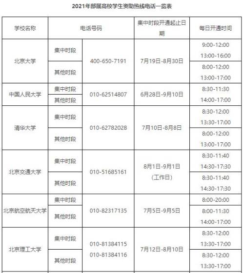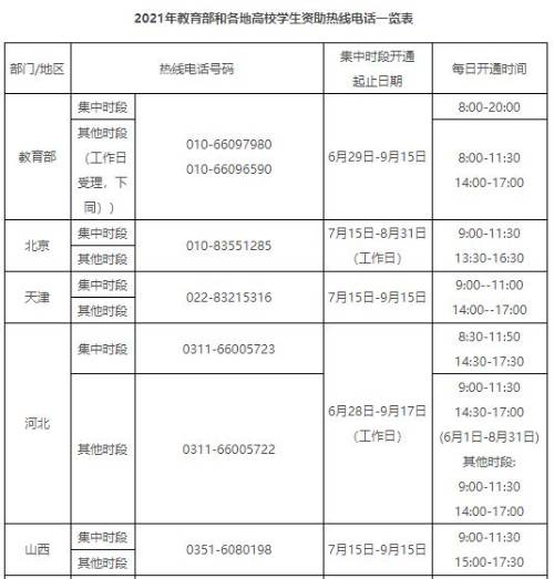 教育部要求各省(区、市)及所属高校、中央高校学生资助管理部门均应开通热线电话,具体时间自行确定。