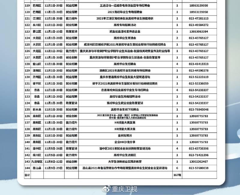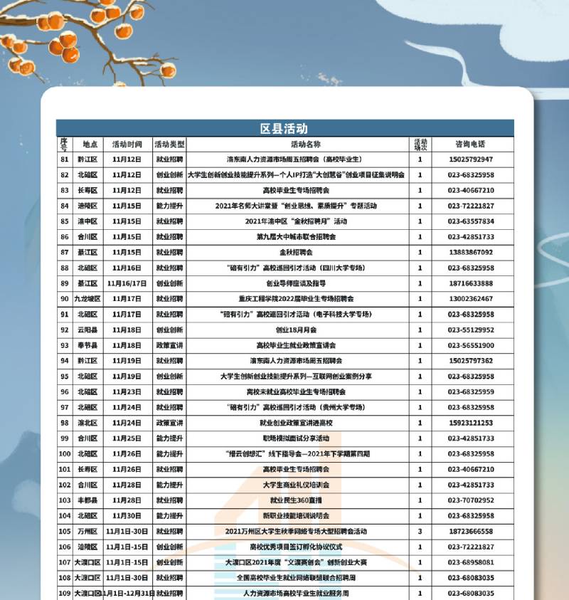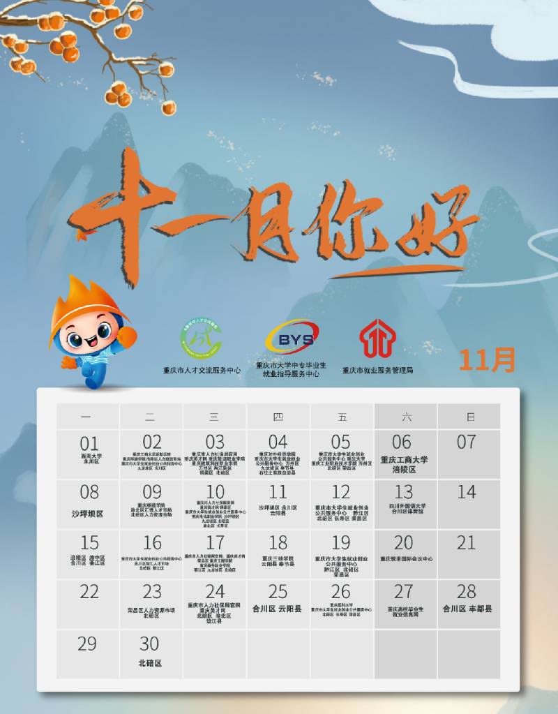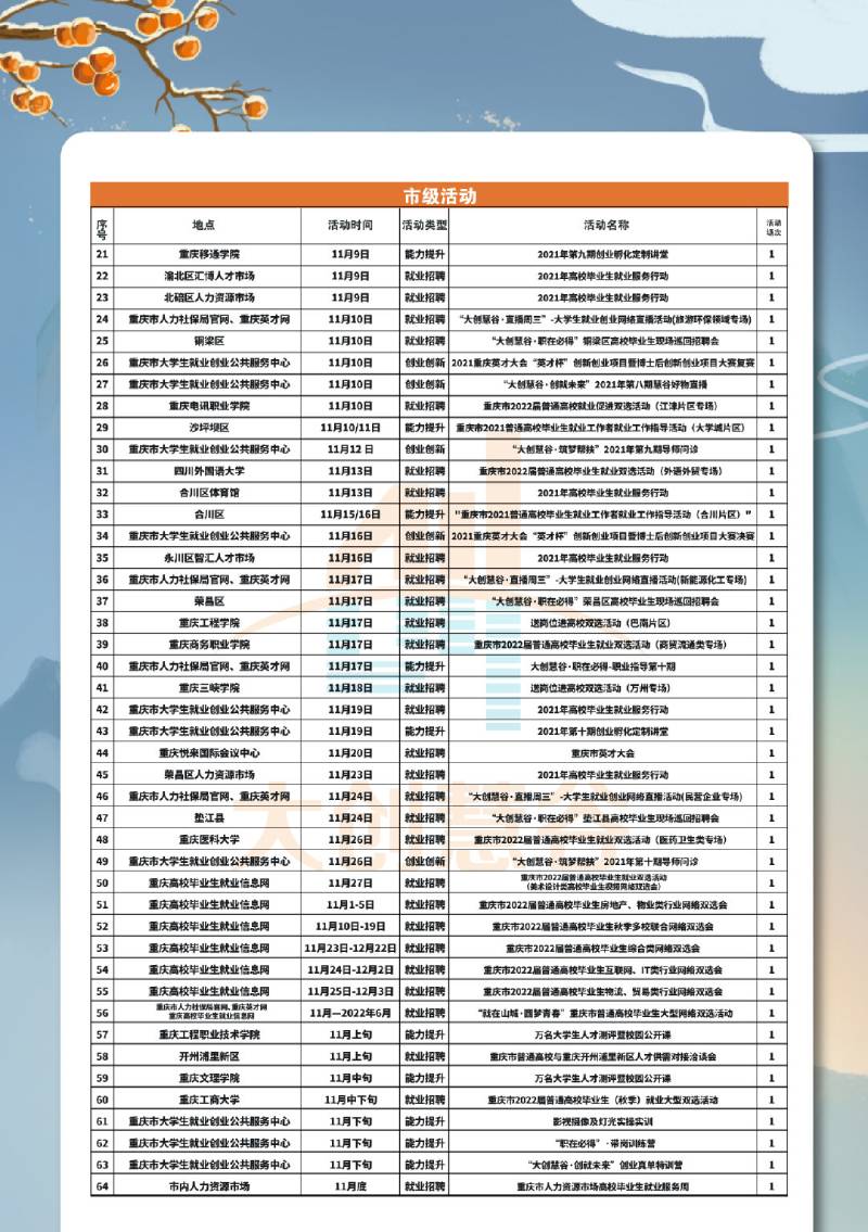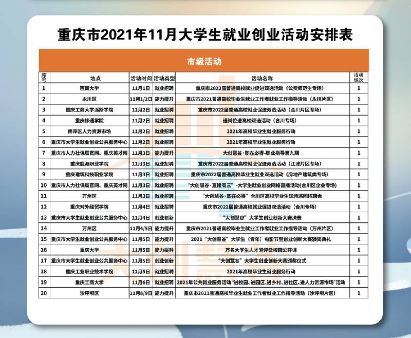 11月重庆市大学生就业创业活动日历公布,助你梦圆山城