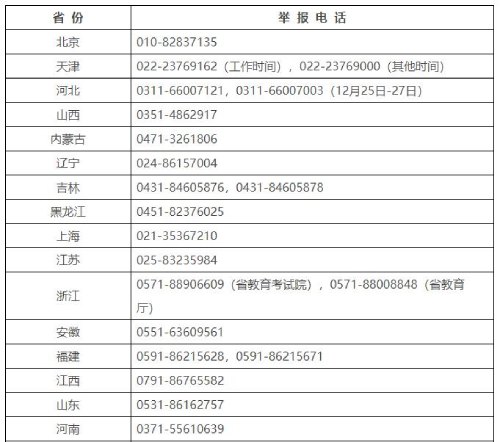 教育部公布2022年全国硕士研究生招生考试违规违法行为举报电话