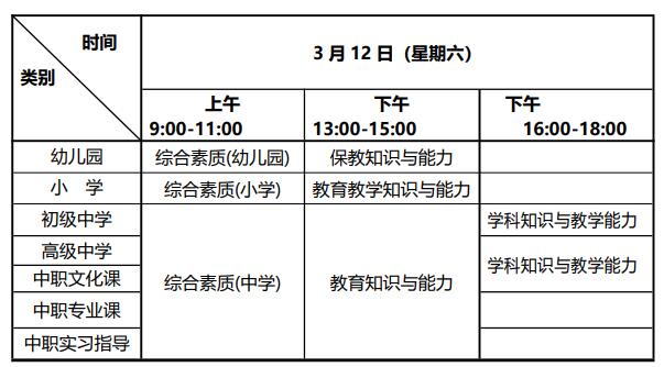 (四)申请中等职业学校专业课和中等职业学校实习指导教师资格的人员参加高级中学科目一、科目二两科考试,科目三《学科知识与教学能力》结合面试进行考核。