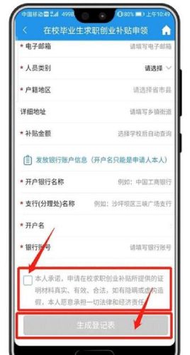 第四步,填写申请信息后,勾选承诺信息,点击【生成登记表】按钮,生成申请表 。