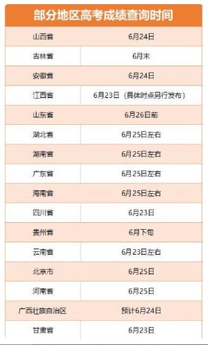 以下为部分地区高考成绩查询时间汇总:(如图参考)