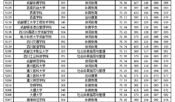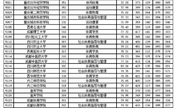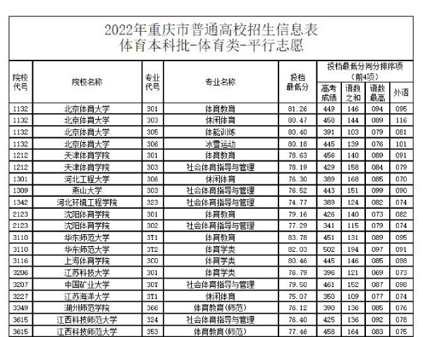 关于2022年重庆市普通高校招生信息表——体育类本科批平行志愿投档最低分: