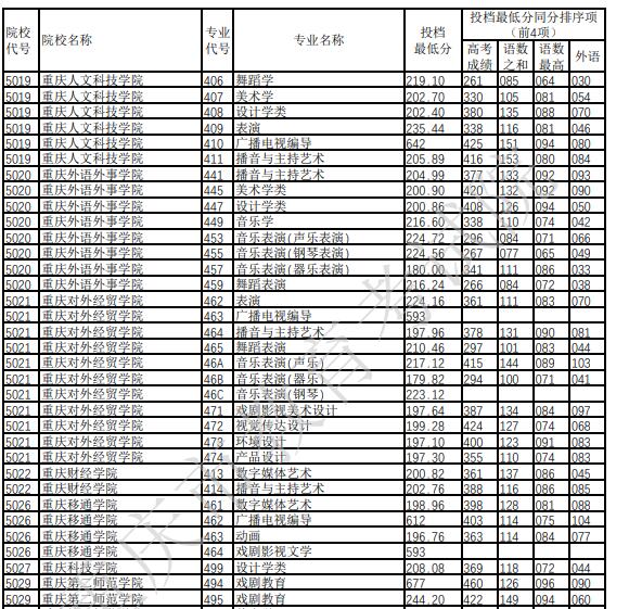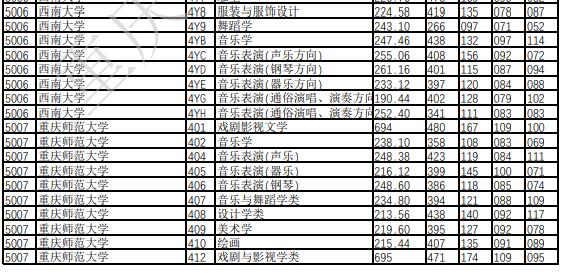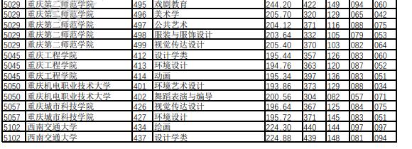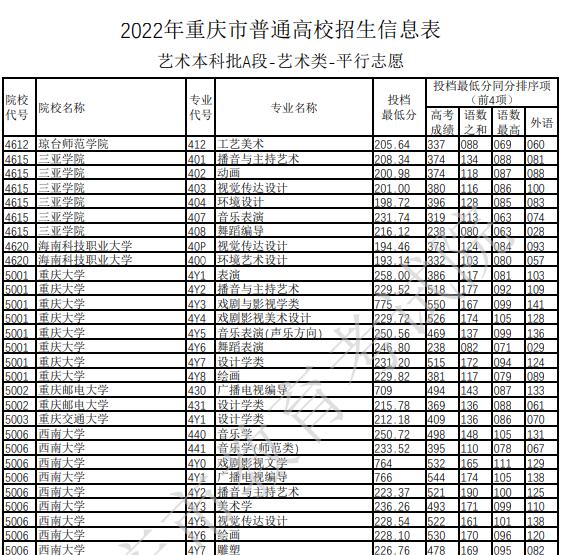 关于2022年重庆市普通高校招生信息表(二)——艺术类本科批A段平行志愿投档录取分数: