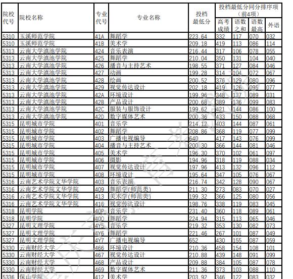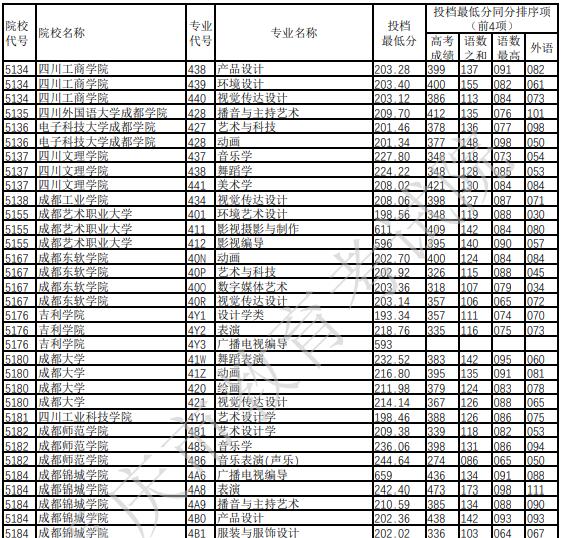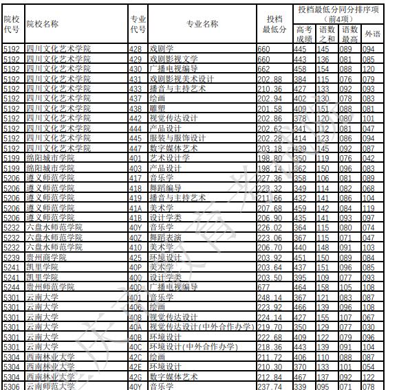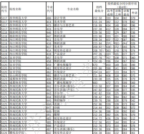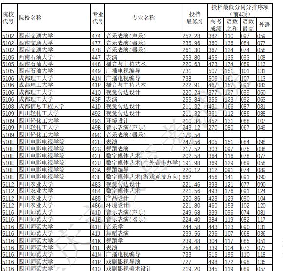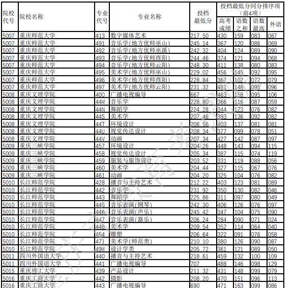 2022年重庆普通高校招生艺术本科批A段平行志愿录取分数(二)