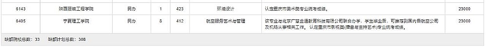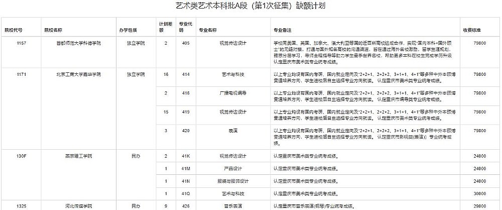2022艺术类艺术本科A段(第1次征集)缺额计划如下: