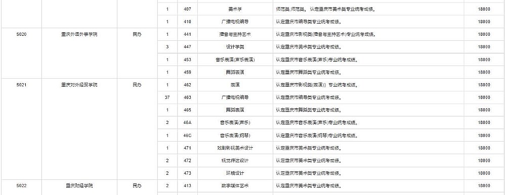 2022年重庆艺术类艺术本科批A段第1次征集缺额计划公布
