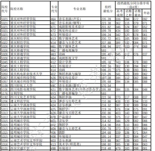 2022年重庆普通高校招生艺术类本科批A段首次征集投档录取分数公布