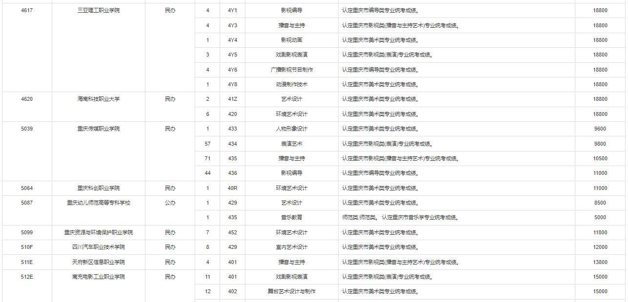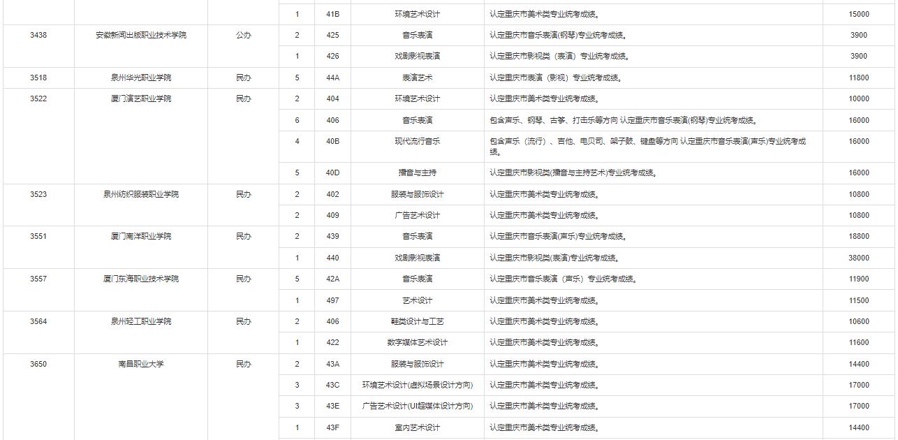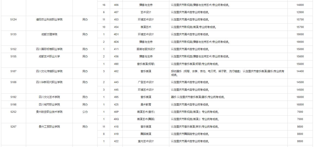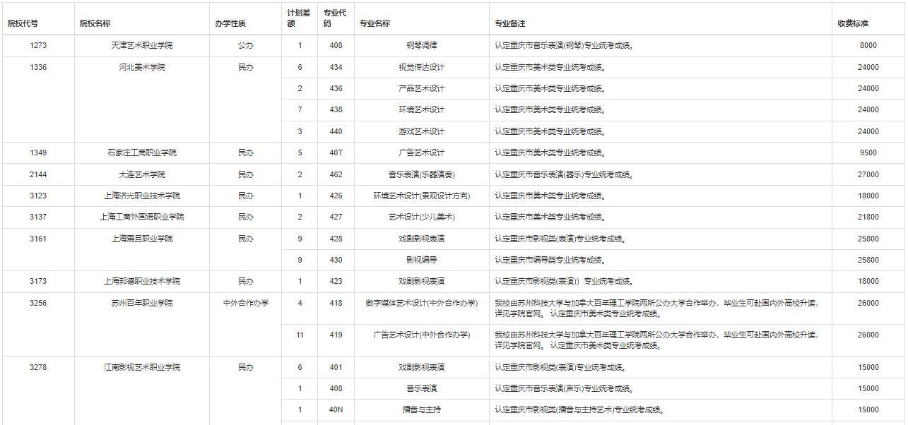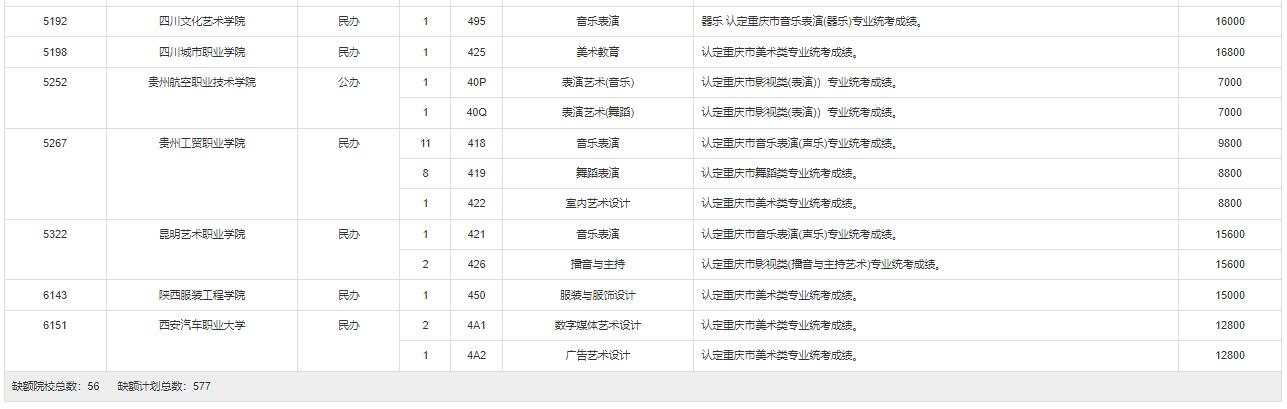 重庆2022年艺术类艺术专科批(第1次征集)缺额计划公布