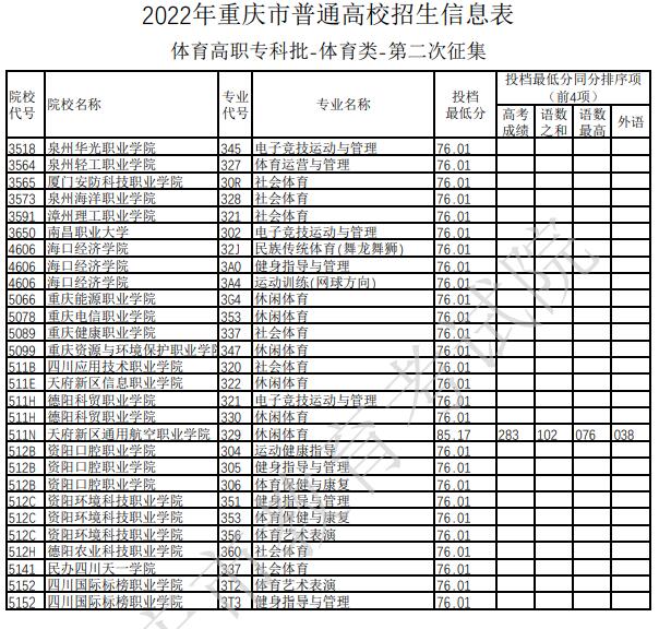 重庆2022年体育高职专科批第2次征集投档分数发布时间:2022/7/26 10:57:15 | 人感兴趣 | 评分:3