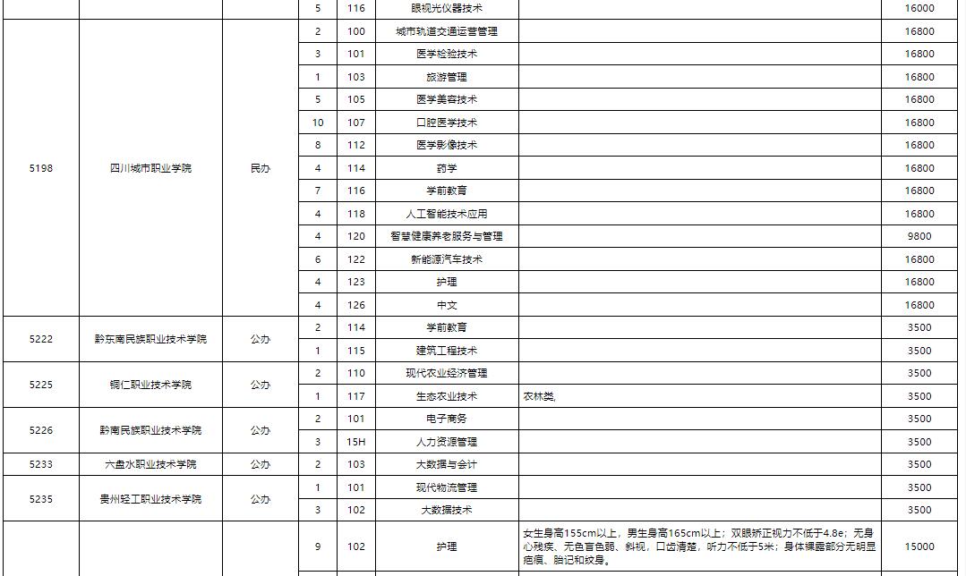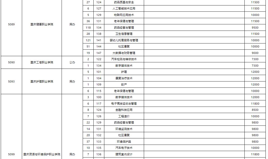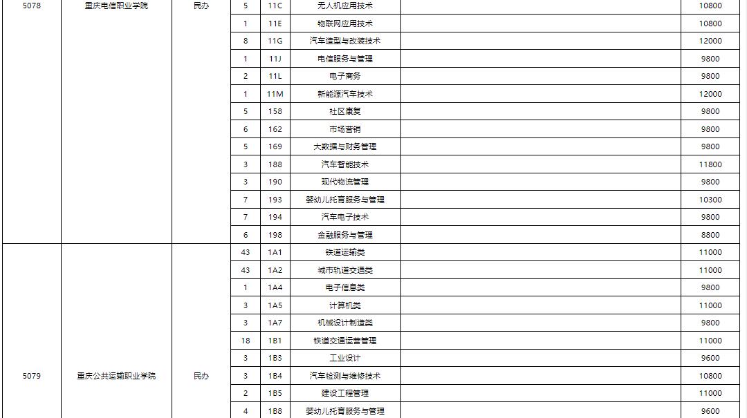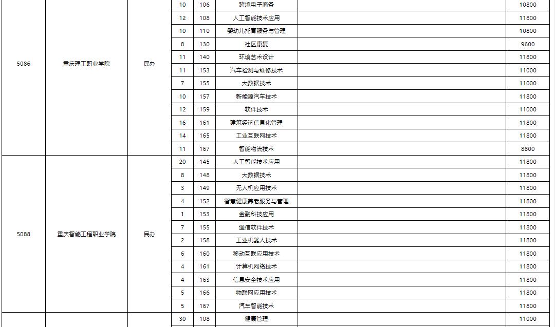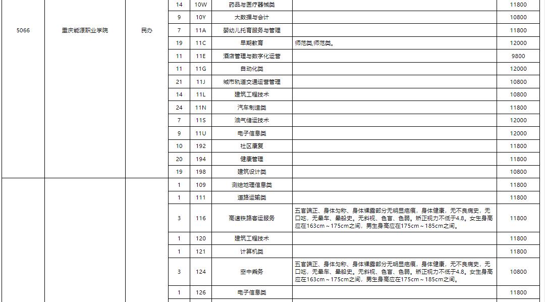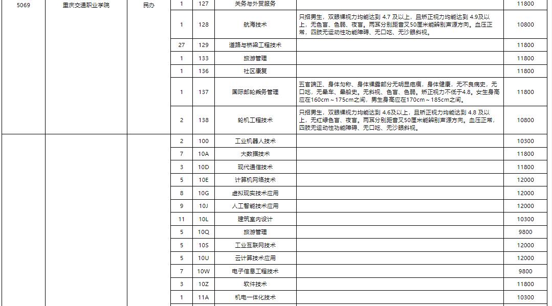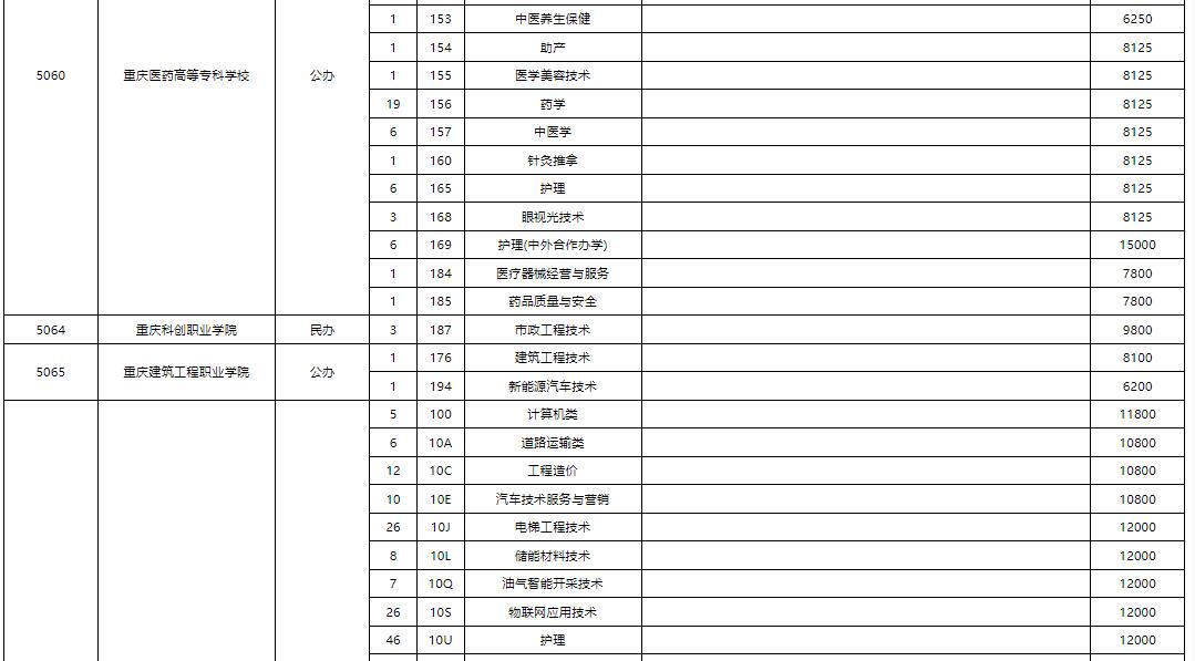 重庆2022年历史类高职专科批第1次征集缺额计划(二)