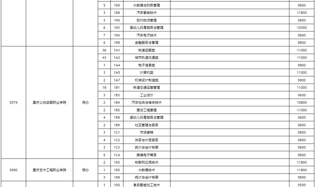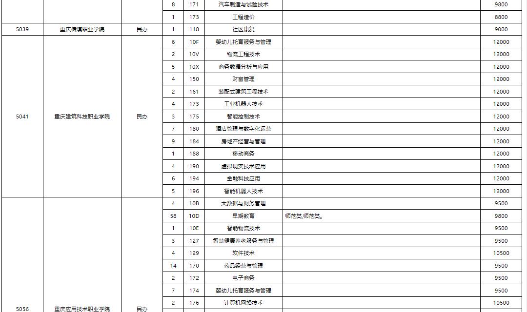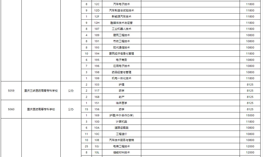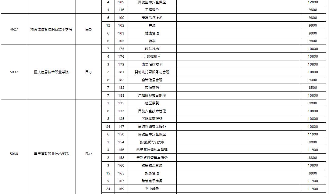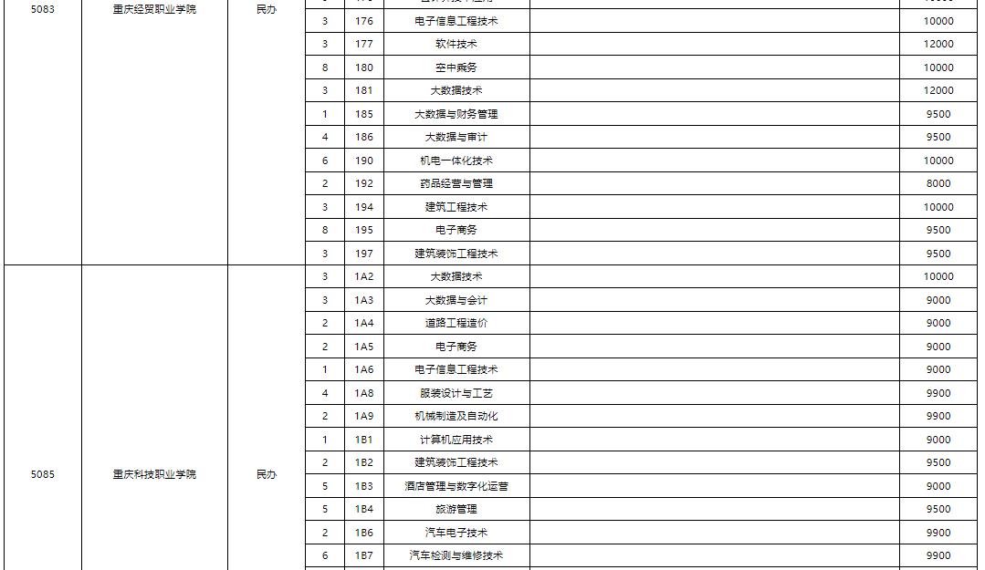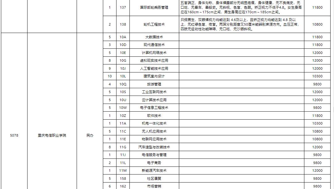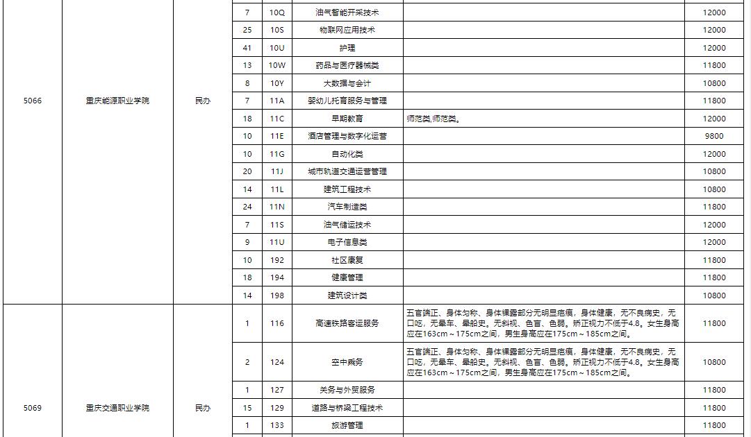 重庆2022年历史类高职专科批第2次征集缺额计划(二)