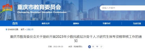 重庆市教委关于提前开展2023年少数民族层次骨干人才研究生报考资格审核工作通知