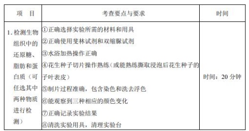生物实验实作的考查内容包括以下 5 个实验。各区县根据实际情况选择考查内容,每名学生仅需完成一个实验内容即可。