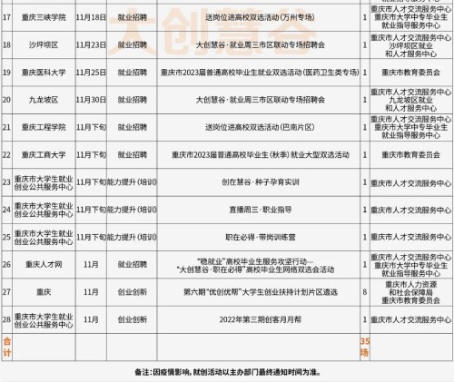 包括有“大创慧谷·就业周三”市区联动专场招聘会、送岗位进高校双选活动、大学生创业创新大赛、就业政策宣讲等一系列活动。