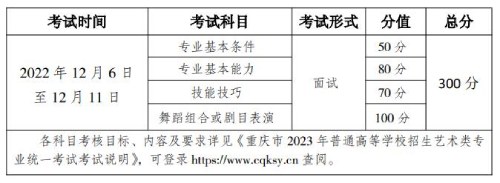 重庆2023年普通高校舞蹈类专业统考简章