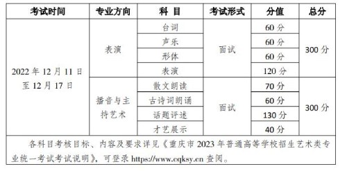 - 重庆2026年艺术类专业(播音与主持类)统考考试说明