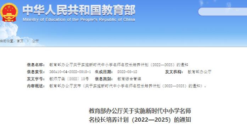 教育部关于实施新时代中小学名师名校长培养计划(2022-2025)的通知