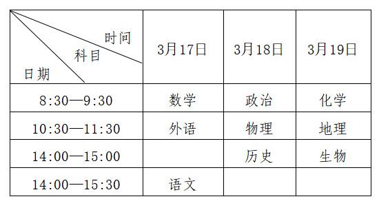 原定于2023年1月举行的黑龙江省普通高中学业水平合格性考试延期至2023年3月17日至19日进行,其他工作要求按照《省教育厅关于做好2023年1月普通高中学业水平合格性考试工作的通知》执行。具体考试时间如下: