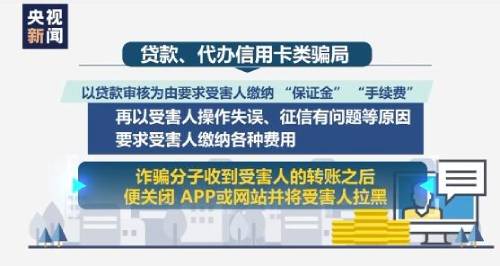 诈骗分子先发布办理贷款、信用卡等虚假广告,引诱受害人下载虚假贷款APP或登录虚假网站。以贷款审核为由要求受害人缴纳“保证金”“手续费”,再以受害人操作失误、征信有问题等原因要求受害人缴纳各种费用。诈骗分子收到受害人的转账之后便关闭APP或网站并将受害人拉黑。